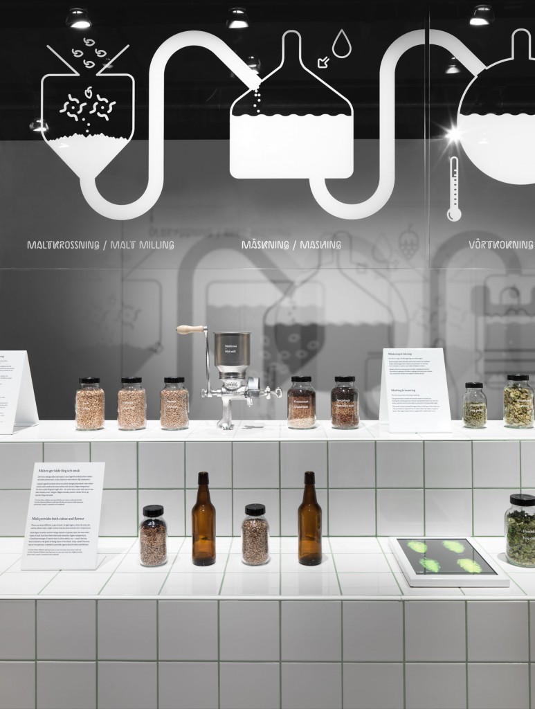 The resulting environment is one that references brewing heritage, the craft of brewing itself and, of course, the sampling. Form Us With Love sought out the classic 15×15 ceramic tile used in so many breweries and ran out a fluid, easy to read visual narrative to link all the entities together seamlessly. A year later and Spritmuseum and its Öl (beer) exhibition has won its share of awards too; much like the beers it shows.
