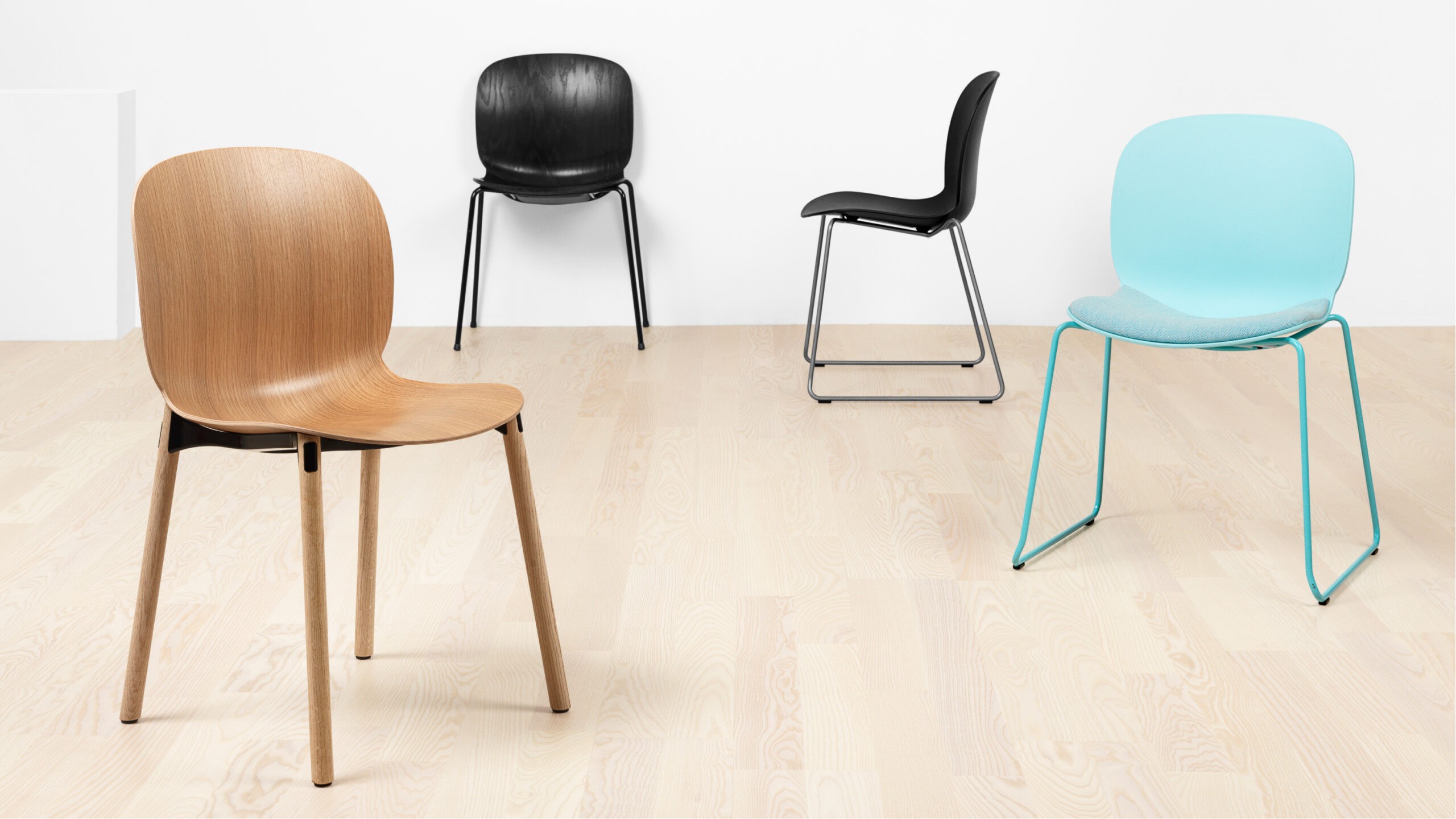 Built on a moulded seat with four different leg structures, Flokk Noor creates more than fourteen different chair options, all possible to dismantle and recycle. The flexibility carefully brings the chair to a new level of usability.